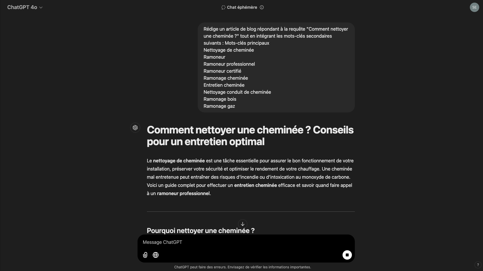 - Prompt recommandé : « Rédige un article de blog répondant à la requête [mot-clé principal] tout en intégrant les mots-clés secondaires suivants : [liste]. »