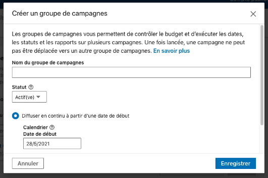 Suite à cela vous serez directement amené à créer un groupe de publicité via la plateforme Campaign Manager de LinkedIn.