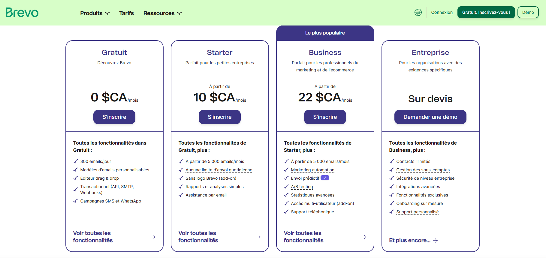 Prix : À partir de 10$/mois, avec une version gratuite pour les petits volumes.