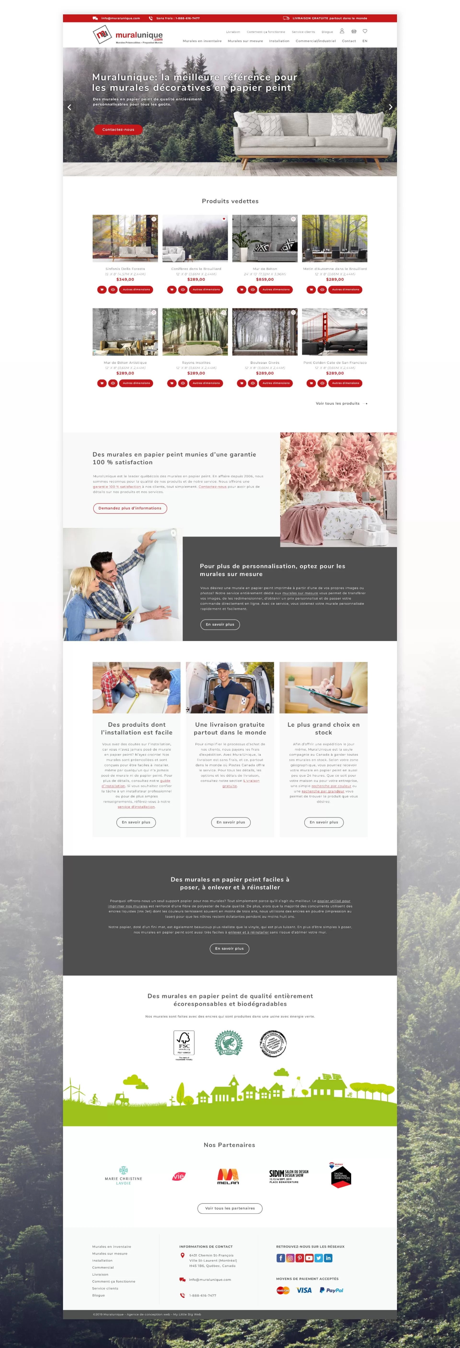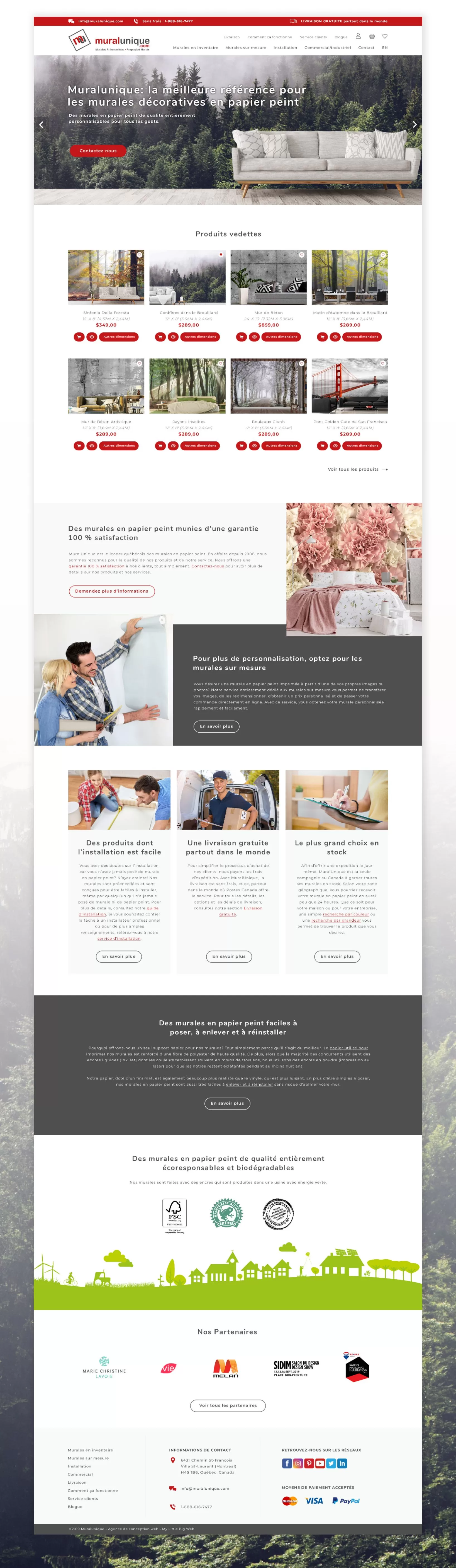 Before our collaboration, Muralunique was looking to amplify its online presence while showcasing the diversity and quality of its products. The goal was clear: to increase the visibility and conversion rate of their online store, while offering an optimal user experience. To meet these needs, our Web design experts have used their expertise in creating online stores, focusing on intuitive navigation and an inspiring design, reflecting the essence of Muralunique.