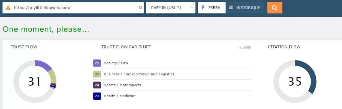 Majestic SEO propose les métriques Trust Flow et Citation Flow qui, bien qu’un peu différentes, fournissent une évaluation de la qualité et de la quantité des liens entrants sur votre site. Ces métriques peuvent être utiles pour évaluer et améliorer l’autorité et le référencement de votre site.