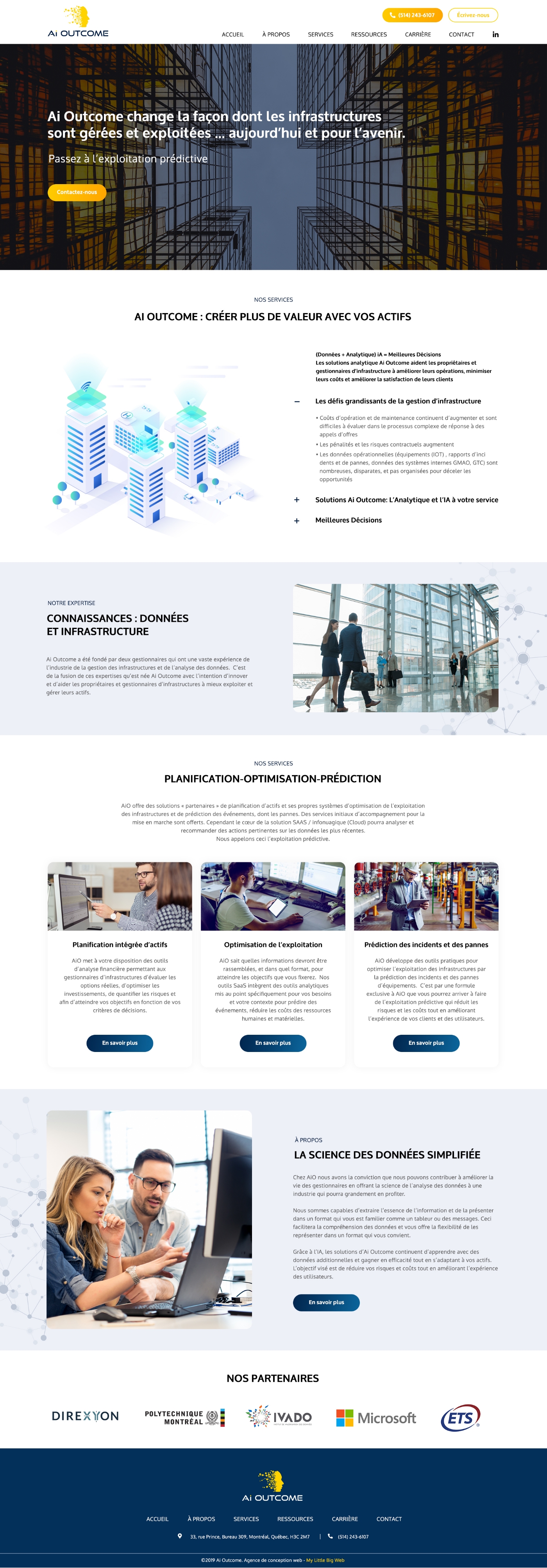Avant notre intervention, AI Outcome souhaitait moderniser son site vitrine pour mieux refléter son expertise et ses solutions technologiques avancées. L’objectif était d’améliorer l’expérience utilisateur et d’augmenter les conversions en ligne. Nous avons entrepris la refonte complète de leur site vitrine pour aligner leur présence digitale avec leur position de leader dans l’IA.