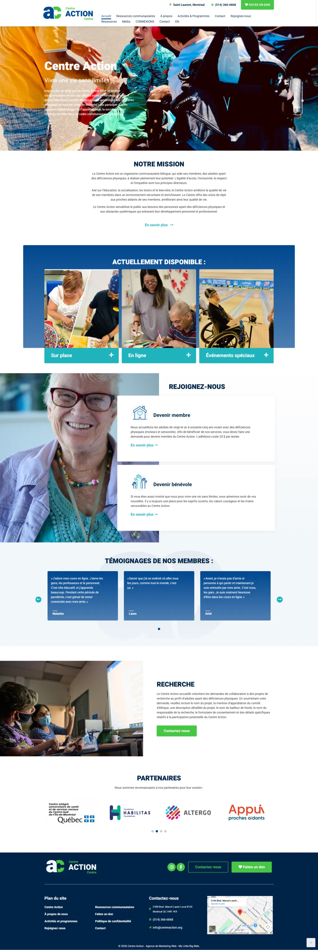 Résultat : Un site qui reflète la chaleur du Centre Action, attire de nouveaux membres et renforce son impact communautaire.