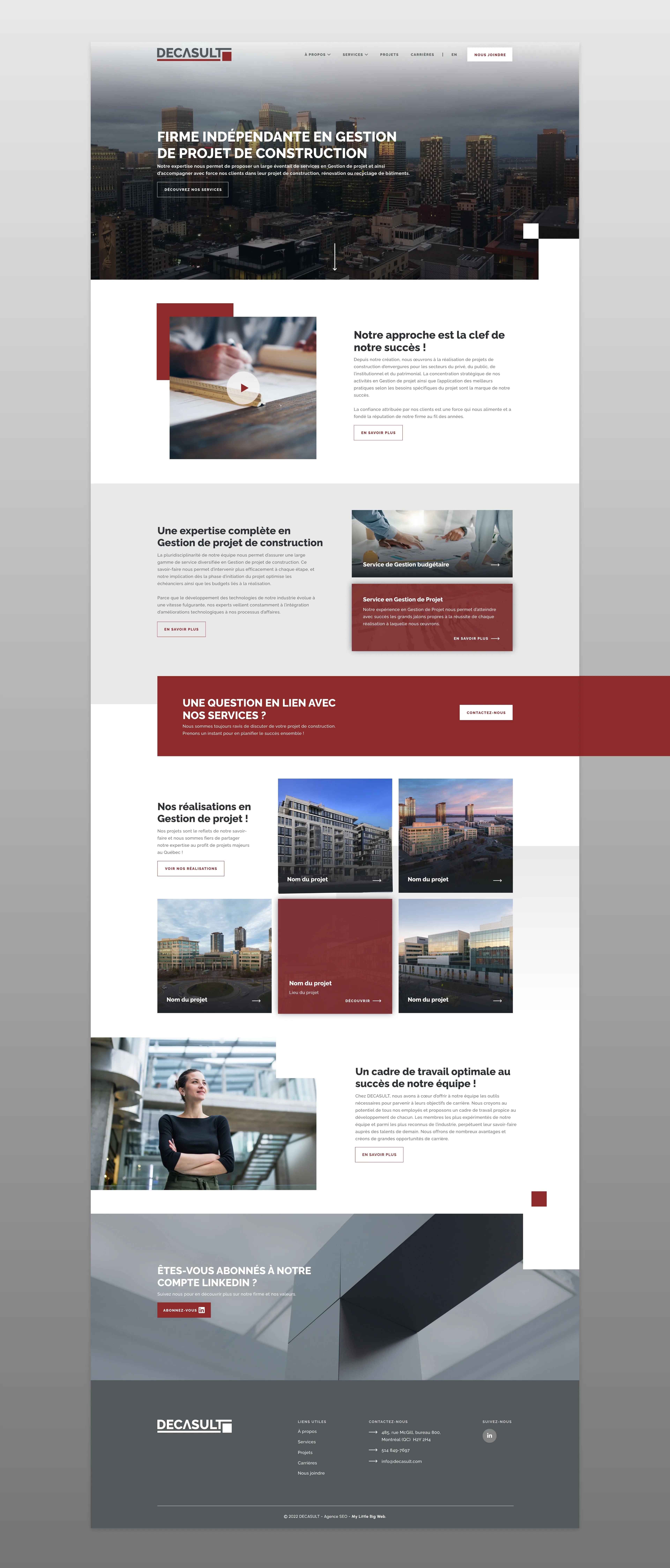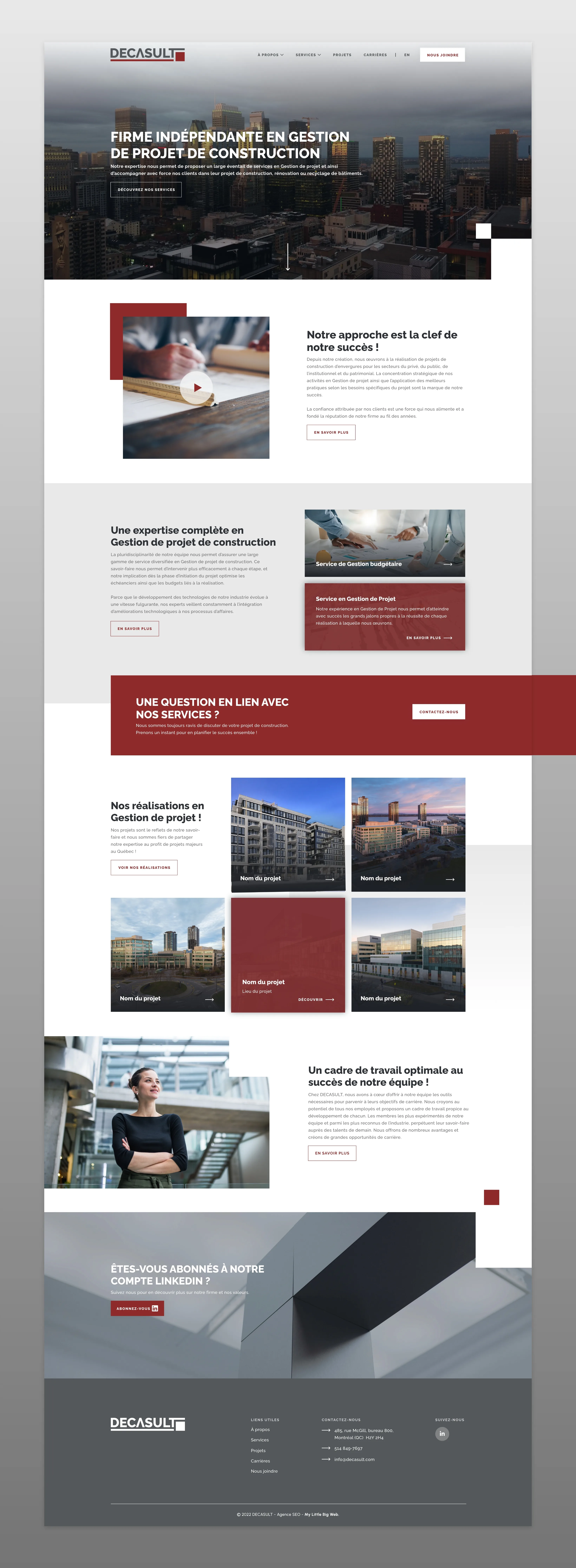 Avant l’intervention de My Little Big Web, Decasult faisait face à un défi majeur : moderniser son image et optimiser sa visibilité en ligne. L’objectif principal était de refléter l’expertise et le professionnalisme de Decasult à travers une refonte complète de son site vitrine. Pour ce faire, notre équipe a mobilisé ses compétences en design web sur mesure, assurant une présentation optimale des services et des projets de Decasult.